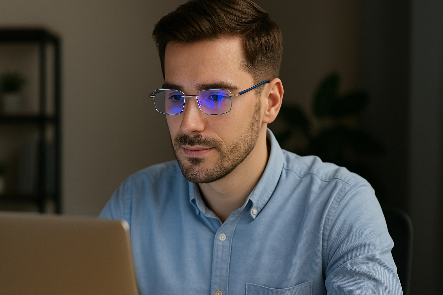 Filters harmful UV rays, protecting your eyes from digital strain.